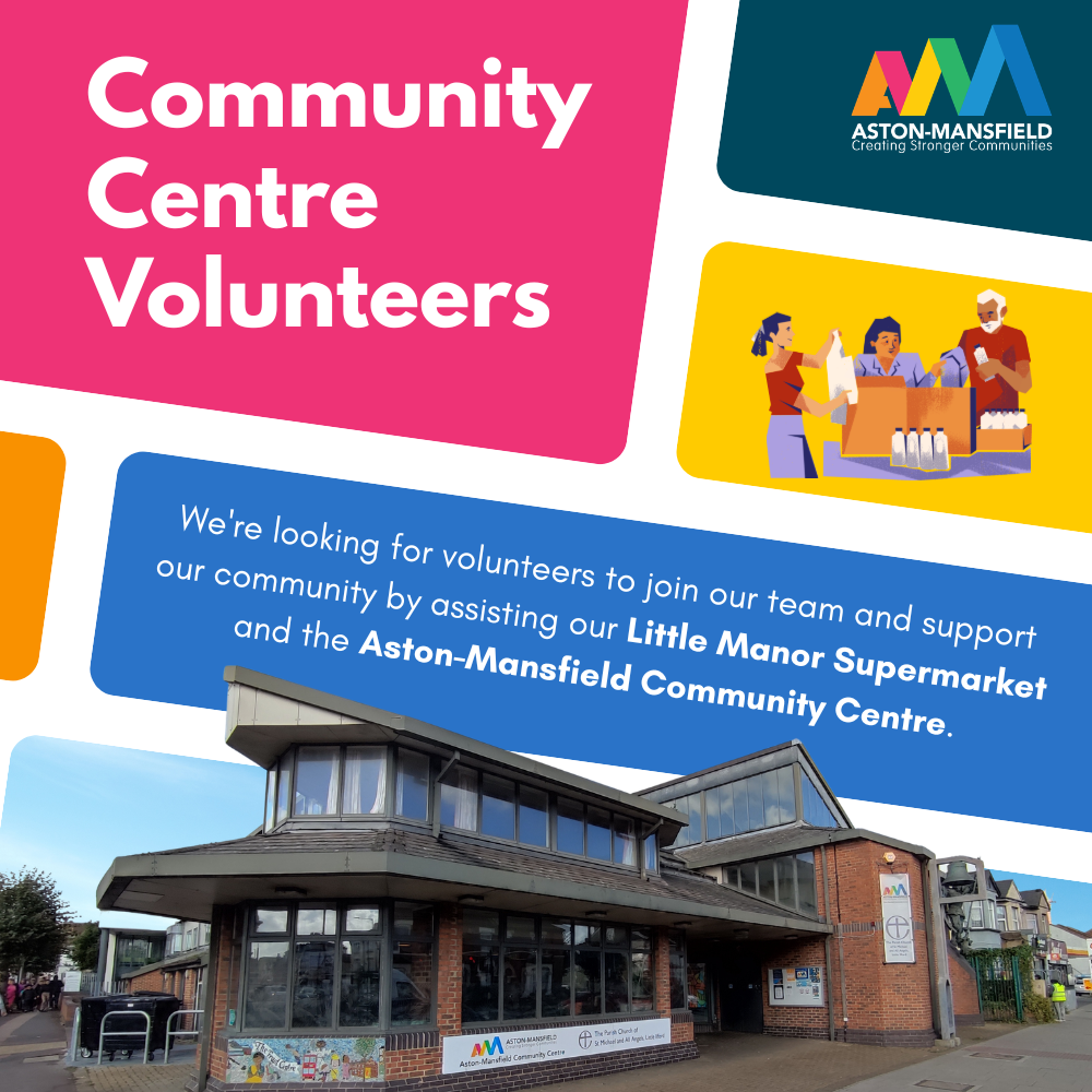 We’re looking for volunteers to join our team and support our community by assisting our Little Manor Supermarket and the Aston-Mansfield Community Centre.